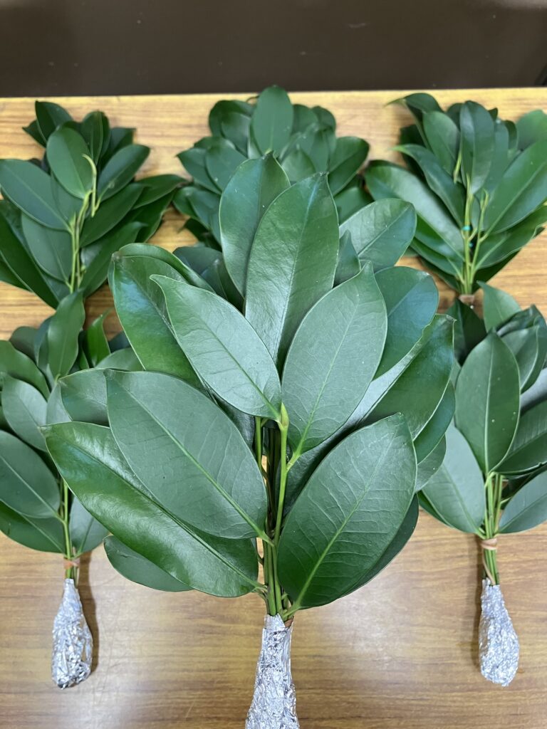 一、二枚目の写真は収穫して丁寧に束ねた本榊の商品です。