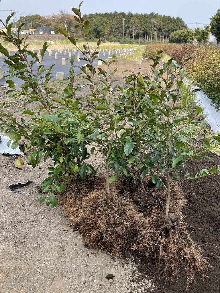 今週、約3000本の本榊『雲仙さかき』の大苗を出荷するため、苗木の抜根作業を行いました。