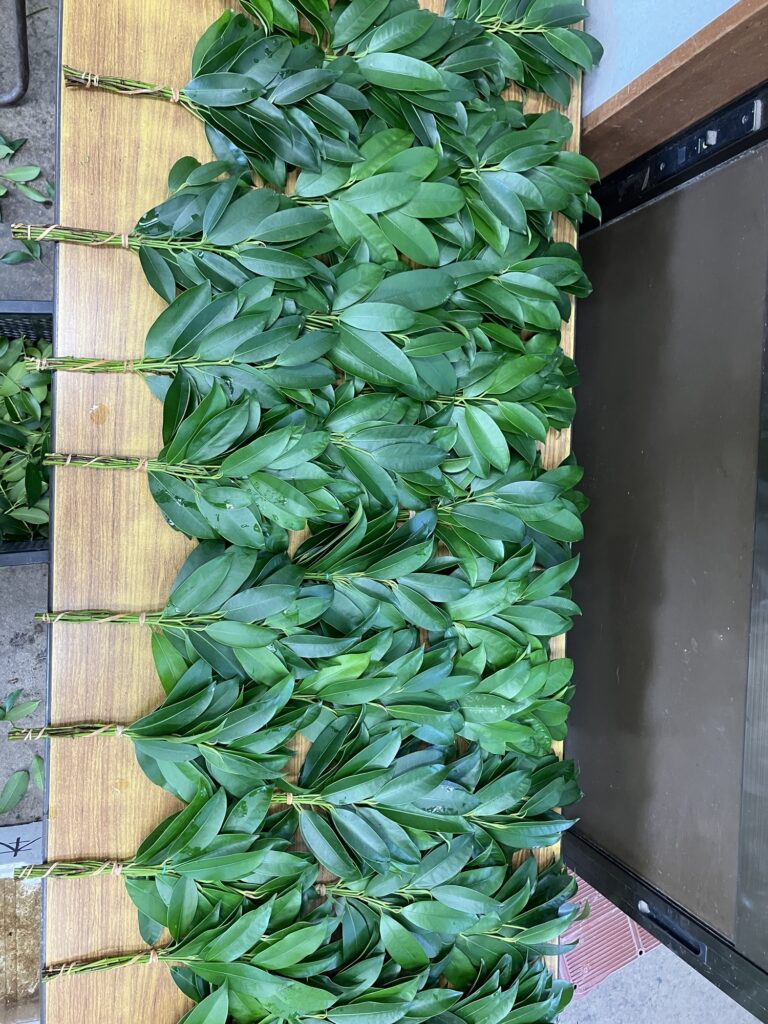本榊『雲仙さかき』を一本一本丁寧に束ね、出荷しています。